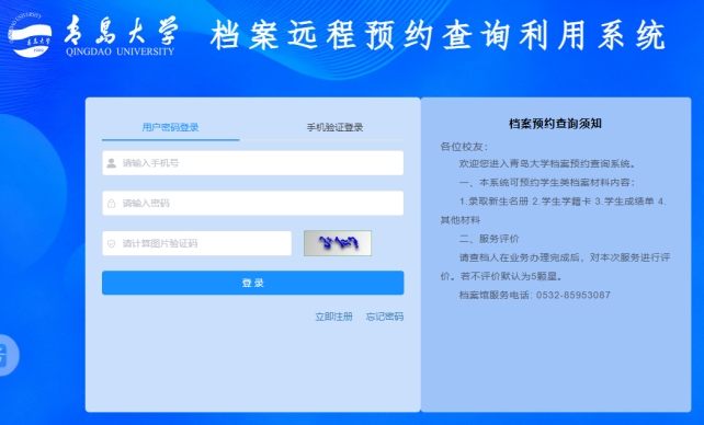 2.青岛大学档案馆网站点击浮动链接“远程预约查询系统”